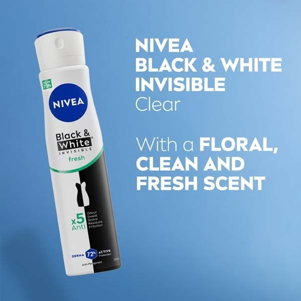 NIVEA Black & White Invisible range provides white mark protection on black clothing & anti-yellow staining on white clothing thanks to its unique patented anti-stains technology. It is a reliable 72h anti-perspirant protection, strong on sweat and odours, that cares for your skin.