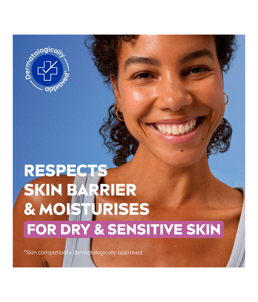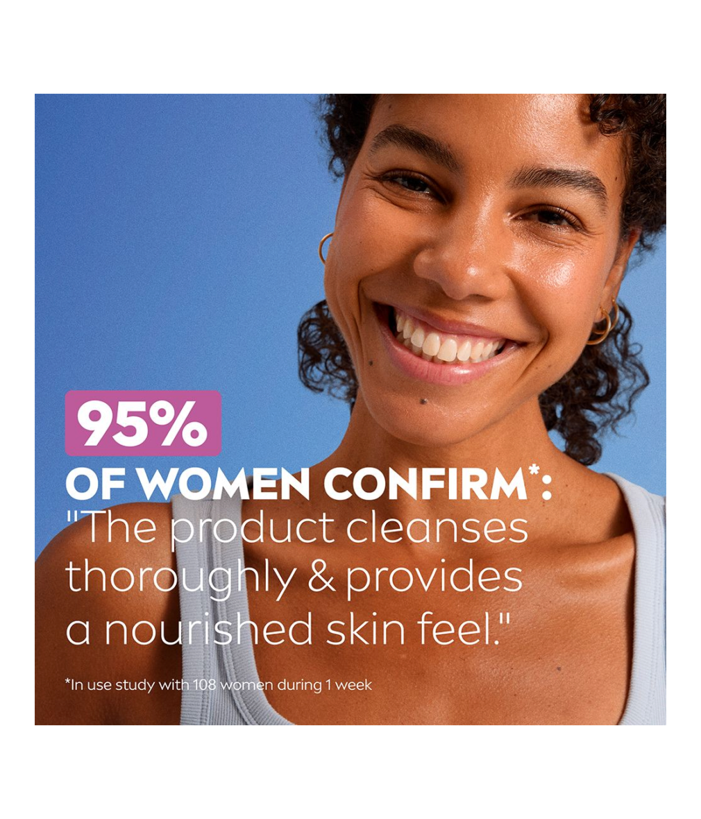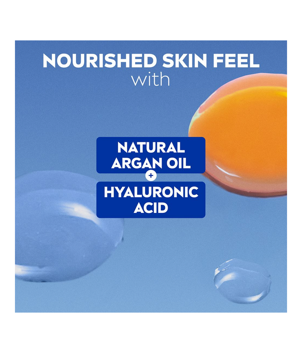 Gentle formula with Natural Argan Oil + Hyaluronic Acid for a nourished skin feel.