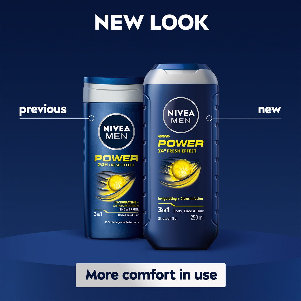 Kicking off the day full of Power? With a citrus zing to refresh the senses, this formula is sure to get you going and its powerful scent will leave you feeling fresh. NIVEA MEN Power Fresh Shower Gel is enriched with Citrus Complex to provide you with the extra freshness you deserve. The product is great for your face, hair and body and provides you with an invigorating scent. The skin tolerance of this pH skin-balanced shower gel has been dermatologically approved. Simply apply the shower gel to your wet skin and massage it onto your body, face and hair before thoroughly rinsing it off.