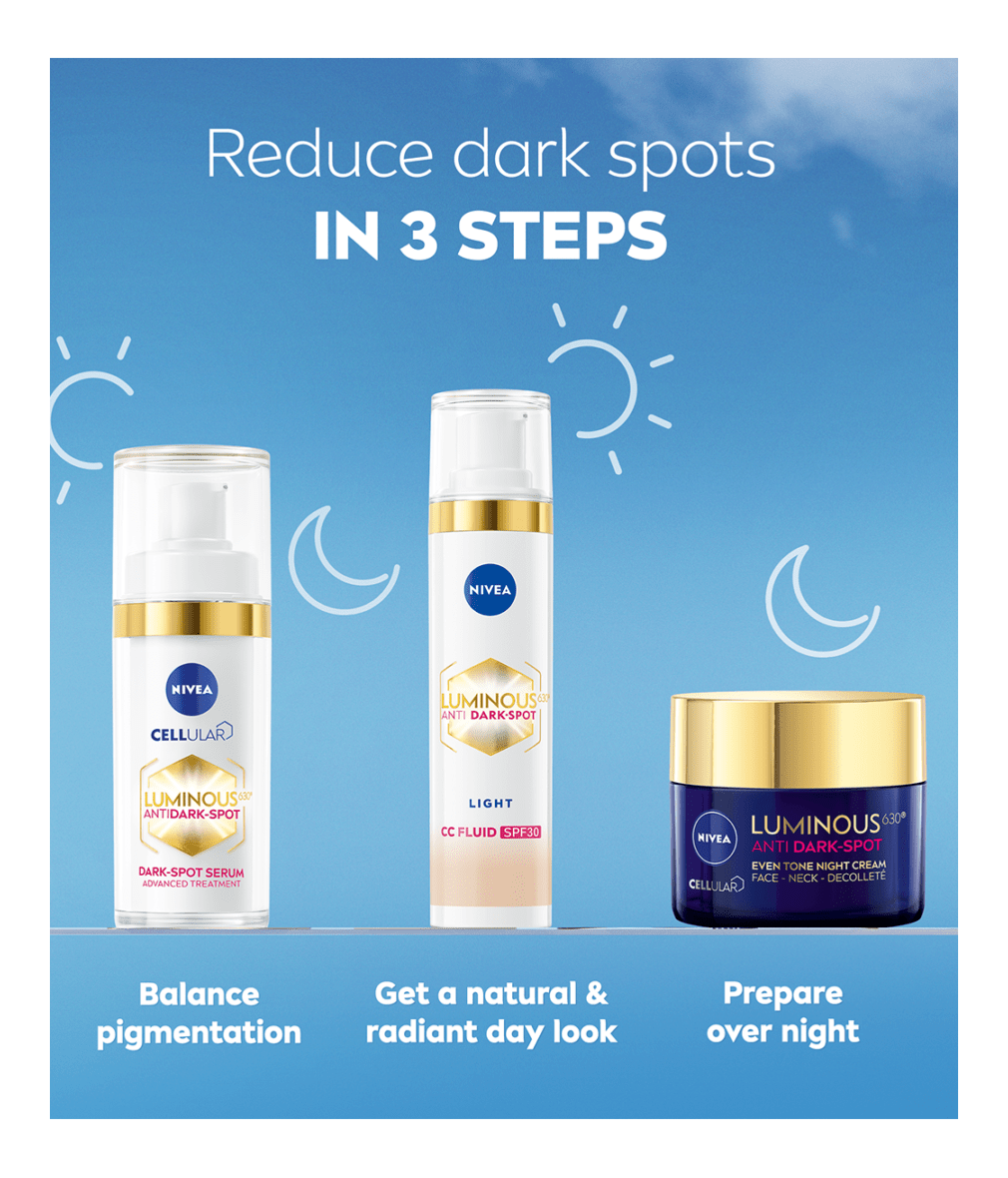The Luminous630 CC Fluid covers, reduces and protects from dark spots - visible results in 2 weeks. With skin tone adapting pigments that instantly cover dark spots. For an even, brighter, luminous skin.