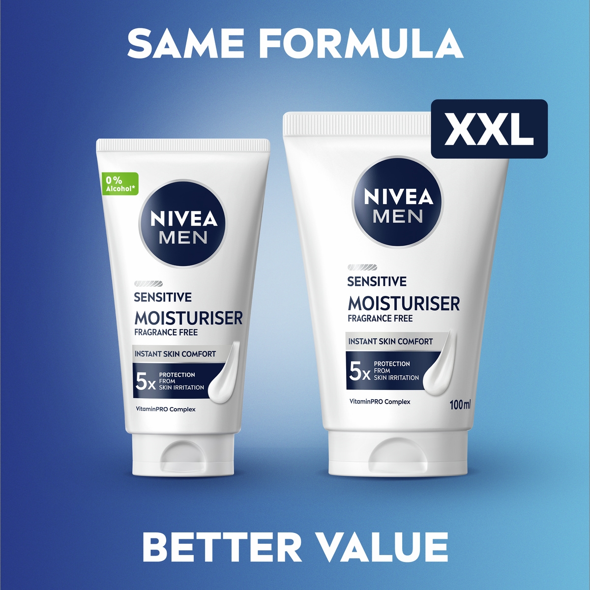 NIVEA MEN SENSITIVE MOISTURISER FRAGRANCE FREE XXL is a carefully developed moisturiser created to cater to the unique needs of men with sensitive skin. Its fragrance-free and advanced formula provides up to 24 hours of continuous hydration while helping to soothe irritation, dryness, and redness commonly experienced with sensitive skin. Enriched with vitamin E, chamomile extract, and other natural ingredients, it nourishes and strengthens the skin’s natural barrier, leaving it soft, balanced, and healthy-looking. The lightweight, non-greasy texture absorbs quickly without leaving residue, making it ideal for everyday use. Dermatologically tested and approved, it protects the skin from environmental stress, shaving irritation, and harsh weather, ensuring long-lasting comfort, hydration, and freshness throughout the day.