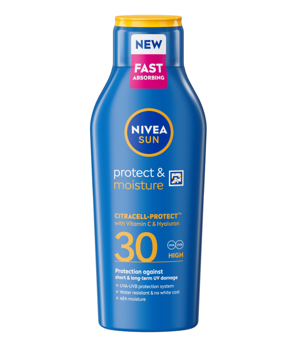 Reliable protection against short- and long-term UV damages and 48h moisture with new, fast absorbing CITRACELL-PROTECT™ formula: NIVEA SUN Protect & Moisture sun screen Pump Spray